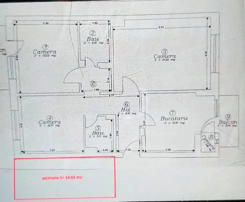 Apartamentul are o suprafață utilă de 67 mp și este compus din 3 camere, 1 hol, 1 baie și o bucătărie, un balcon spațios și o debara. De asemenea, are beci la subsolul blocului.